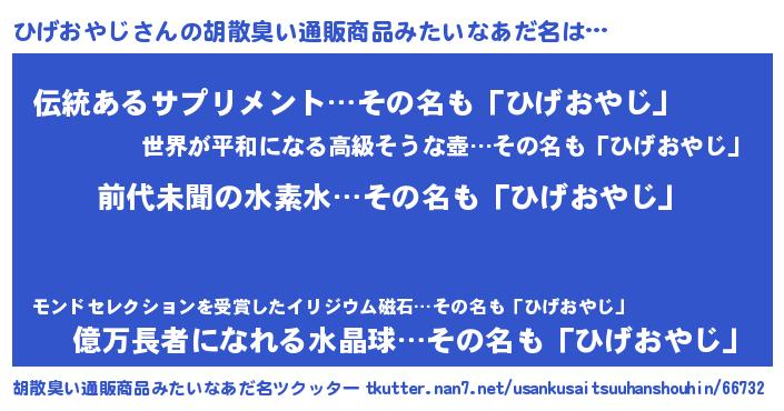 | 意味不明あだ名 | 『永久保存ひげおやじ』 |