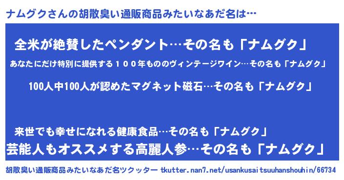 | 欧米人風あだ名 | 『アンジェラ・ナムグク』 |