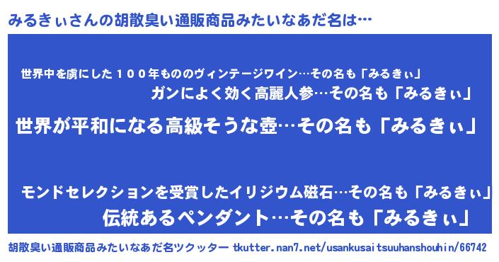 | 意味不明あだ名 | 『みるきぃフォーエバー』『自称みるきぃ』 |