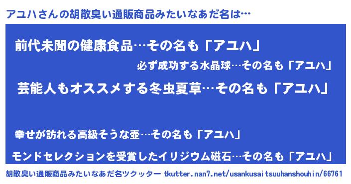| ヘコむあだ名 | 『アユハ(震え声)』『アユもー』 |