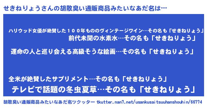 | 肩書あだ名 | 『せきねりょう総理大臣』 |