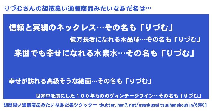 | 意味不明あだ名 | 『永久保存りづむ』『ペロリンりづむ』 |