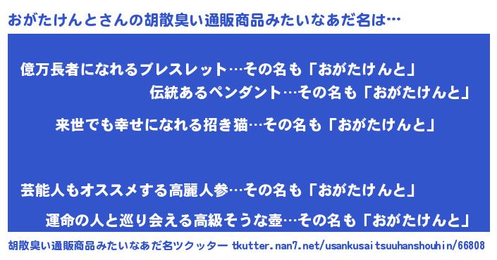 | ヘコむあだ名 | 『おがたけんと(笑)』『おがにー』 |