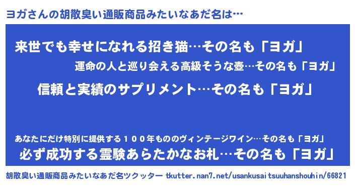 | 意味不明あだ名 | 『とにかく怪しいヨガ』『永久保存ヨガ』 |