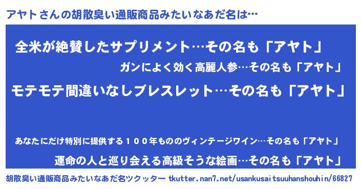 | ヘコむあだ名 | 『アヤにー』『アヤお』『酢こんぶ』 |