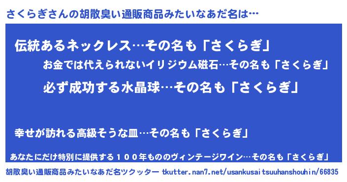 | 意味不明あだ名 | 『めかぶ科さくらぎ属』 |