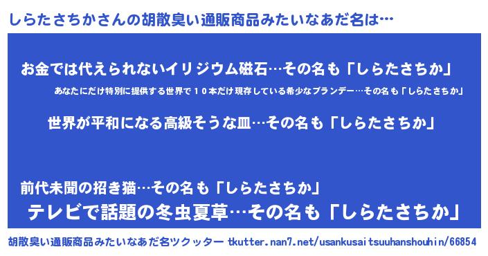 | 意味不明あだ名 | 『しらたさちかフォーエバー』 |