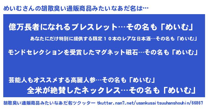 | 欧米人風あだ名 | 『ダニエルめいむ』『マイケルめいむ』 |