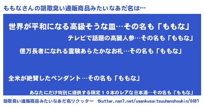 | ヘコむあだ名 | 『もももー』『なまこ酢』『ももっ子』 |