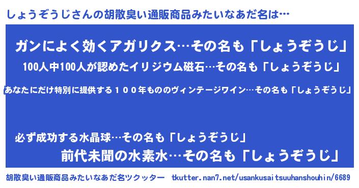 | 意味不明あだ名 | 『住所不定無職しょうぞうじ(2歳)』 |