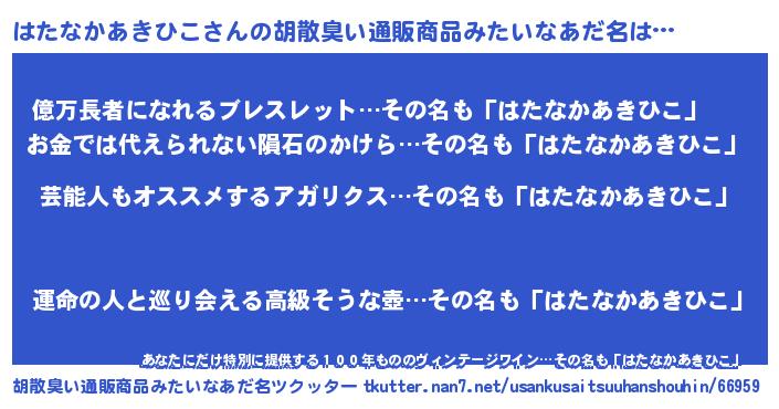 | 意味不明あだ名 | 『自称はたなかあきひこ』 |