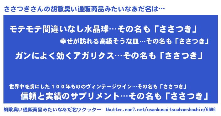 | 意味不明あだ名 | 『自称ささつき』『ペロリンささつき』 |