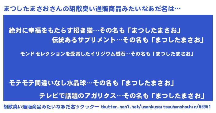 | 肩書あだ名 | 『まつしたまさお助手』 |