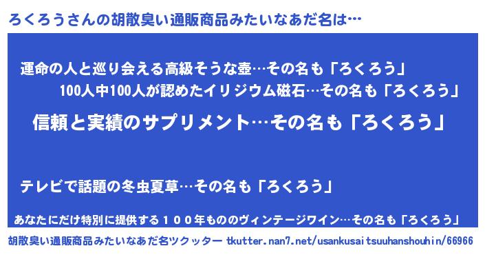 | 意味不明あだ名 | 『とにかく怪しいろくろう』 |