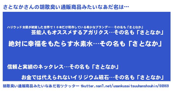 | 意味不明あだ名 | 『めかぶ科さとなか属』『自称さとなか』 |
