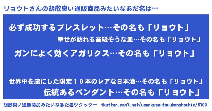 | 男性向けラノベタイトル風あだ名 | 『緋弾のリョウト』『リョウトの憂鬱』 |