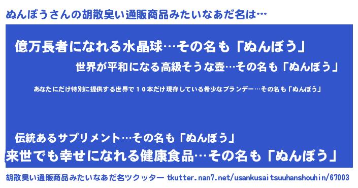 | 意味不明あだ名 | 『住所不定無職ぬんぼう(81歳)』 |