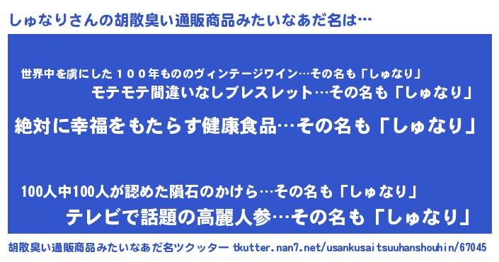 | 意味不明あだ名 | 『永久保存しゅなり』『自称しゅなり』 |