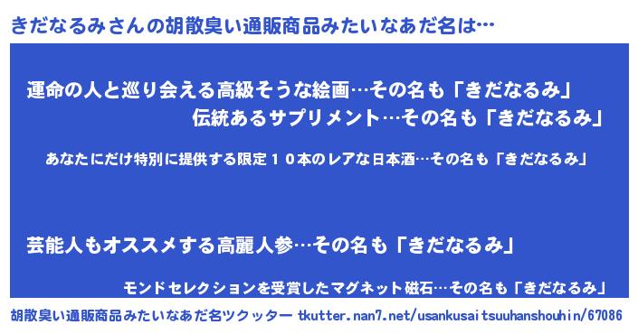 | 意味不明あだ名 | 『住所不定無職きだなるみ(59歳)』 |