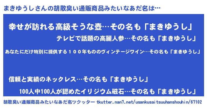 | ヒーロー風カッコイイあだ名 | 『仮面マキダー』『正義の使者まきゆうし』 |