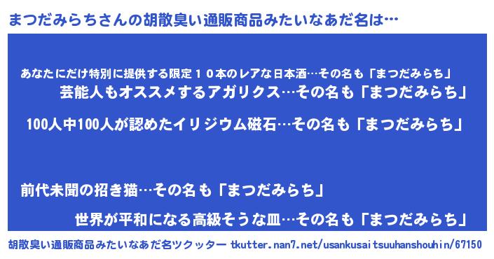 | ヘコむあだ名 | 『牛乳』『まつだみらち(爆)』 |