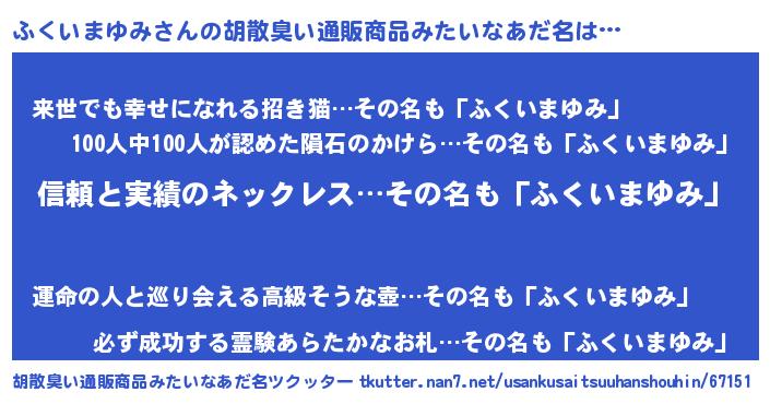 | 男性向けラノベタイトル風あだ名 | 『ダンジョンにふくいまゆみを求めるのは間違っているだろうか』 |