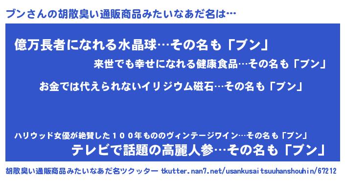 | ヘコむあだ名 | 『ブンもー』『ブン(遠い目)』 |