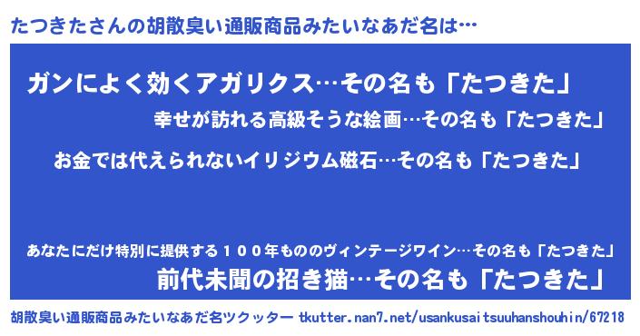 | ヒーロー風カッコイイあだ名 | 『愛の使者たつきた』『ネオタツキタ』 |