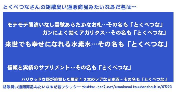| ヒーロー風カッコイイあだ名 | 『ネオトクベツナ』『スーパートクベツナ』 |