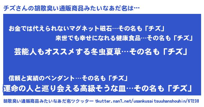 | 意味不明あだ名 | 『自称チズ』『眠気覚ましガムチズ味』 |