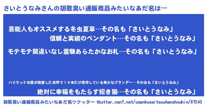 | 肩書あだ名 | 『さいとうなみプロデューサー』 |