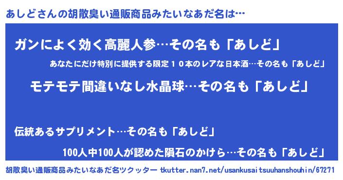 | 意味不明あだ名 | 『ペロリンあしど』『自称あしど』 |