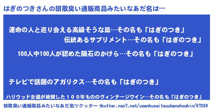 | ヘコむあだ名 | 『つくし』『はぎっぺ』『はぎにー』 |