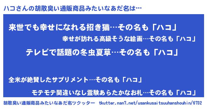 | 意味不明あだ名 | 『自称ハコ』『永久保存ハコ』 |