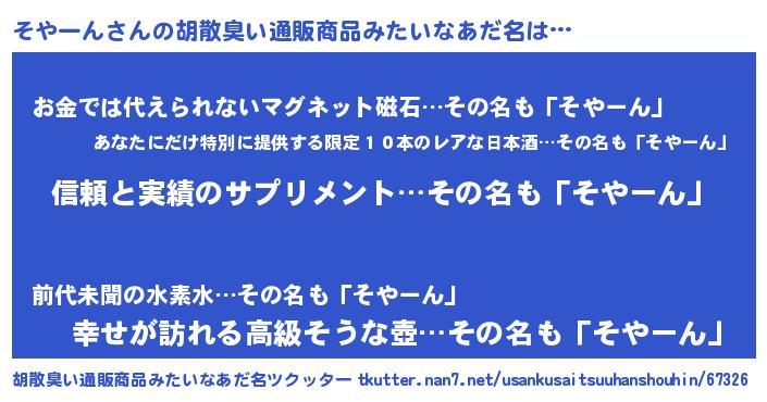 | ポケモン風あだ名 | 『ソヤゴンZ』『ヒソヤーン』 |
