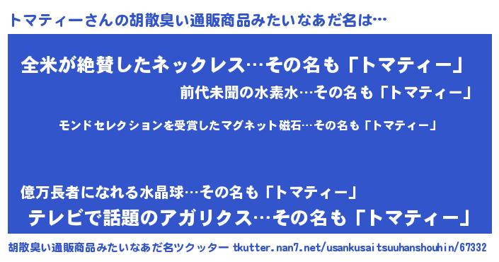 | ヘコむあだ名 | 『トマを』『トマティー(爆)』 |