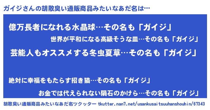 | ヘコむあだ名 | 『ガイもー』『酢こんぶ』 |