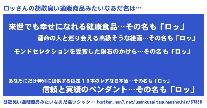 | 意味不明あだ名 | 『眠気覚ましガムロッ味』『永久保存ロッ』 |