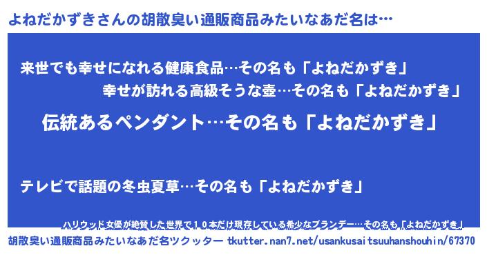 | 男性向けラノベタイトル風あだ名 | 『よねだかずきに滅ぼされるだけの簡単なお仕事です』 |