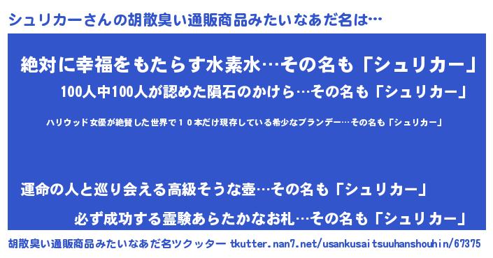 | ヘコむあだ名 | 『シュリカー(遠い目)』『シュもー』 |
