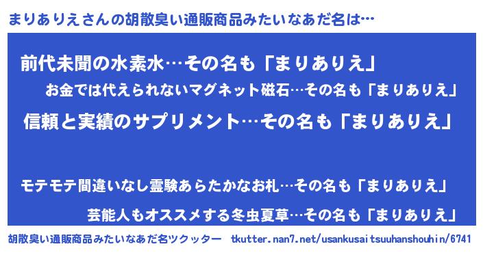 | 意味不明あだ名 | 『とにかく怪しいまりありえ』 |