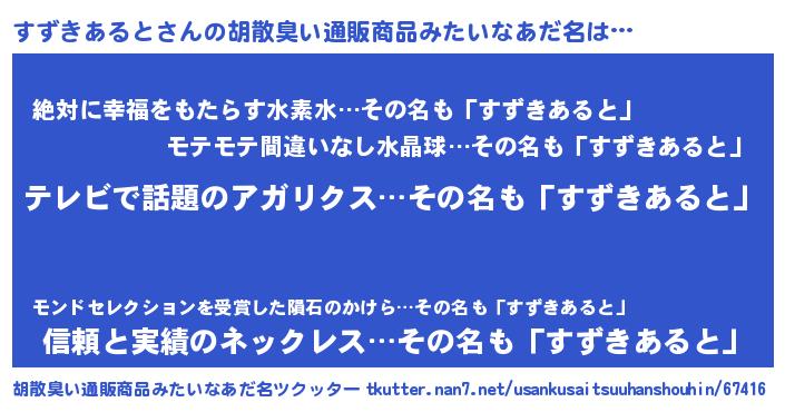 | ヘコむあだ名 | 『すずきあると(笑)』『すずっちょ』 |