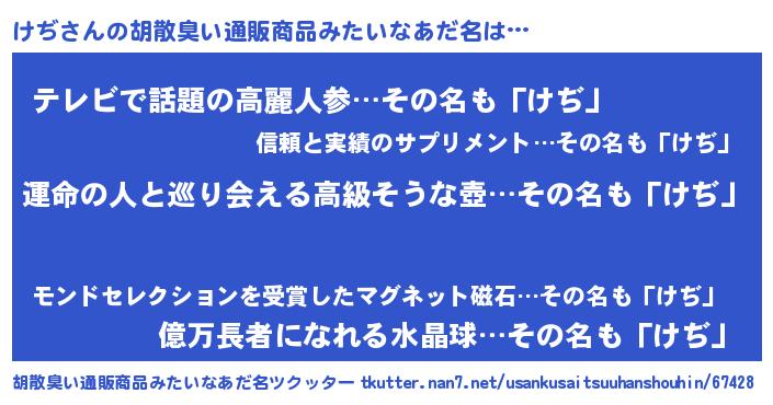 | 意味不明あだ名 | 『けぢフォーエバー』『自称けぢ』 |
