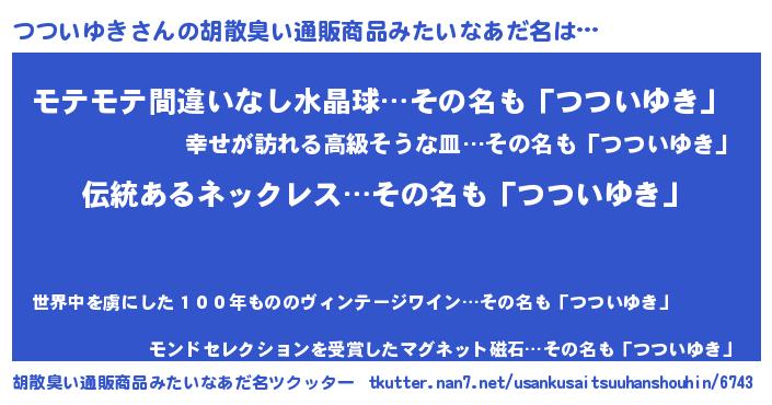 | ポケモン風あだ名 | 『ヒツツイユキ』『ツツチュウ』 |