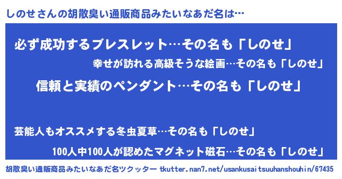 | 意味不明あだ名 | 『とにかく怪しいしのせ』『自称しのせ』 |