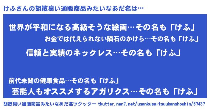 | ヘコむあだ名 | 『けふっ子』『なまこ酢』『けふ(笑)』 |