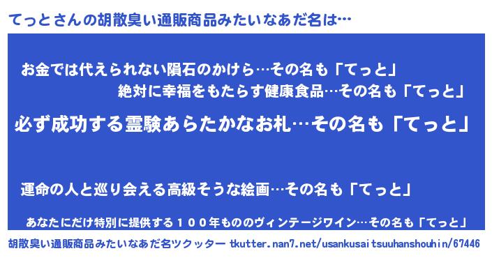 | ヘコむあだ名 | 『てっもー』『てっと(笑)』『てっお』 |