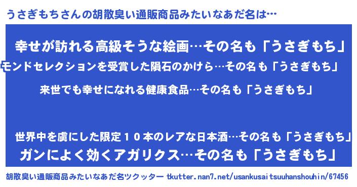 | 意味不明あだ名 | 『永久保存うさぎもち』『自称うさぎもち』 |