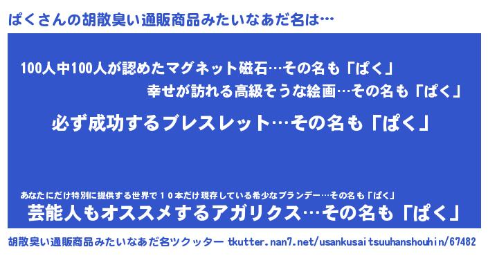 | 伝説のあだ名 | 『伝説の竜騎士ぱく』『最強の忍者ぱく』 |