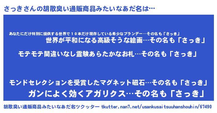 | 意味不明あだ名 | 『ペロリンさっき』『自称さっき』 |